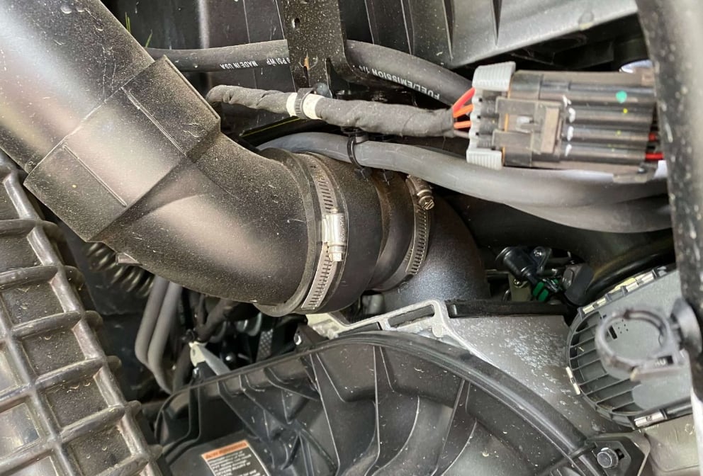 This is made from an OEM flange and allows you to adapt your belt box for easy snorkeling from the belt box. This also allows you to easily re-route your belt exhaust to keep it dry during water crossings for you that like to go deep!